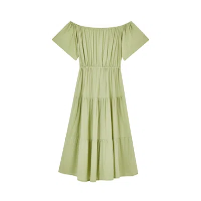 Regina Off-the-shoulder Midi Dress In Green