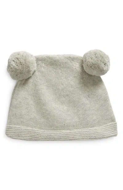 Kids' Double Pompom Organic Cotton Beanie In Light Grey Mel