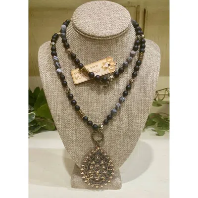 The Santa Fe Sparkle Teardrop Beaded Necklace In Black Multi