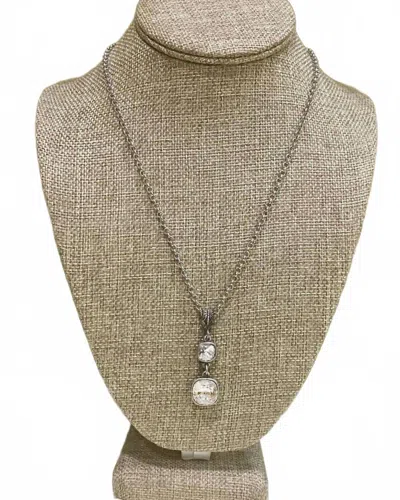 Women's Double Crystal Pendant Necklace In Silver In Metallic