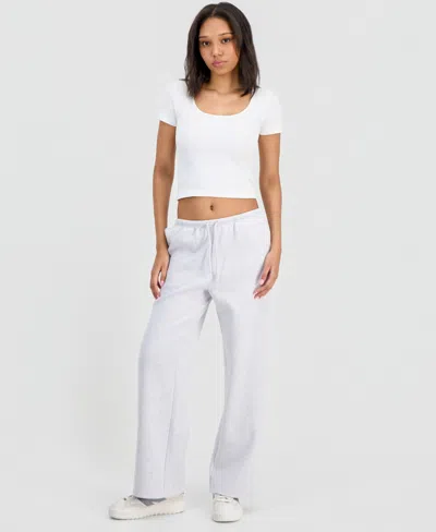 Juniors' High-rise Fold-over-waist Fleece Pants In White
