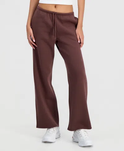 Juniors' Wide-leg Fleece Sweat Pants In Brown