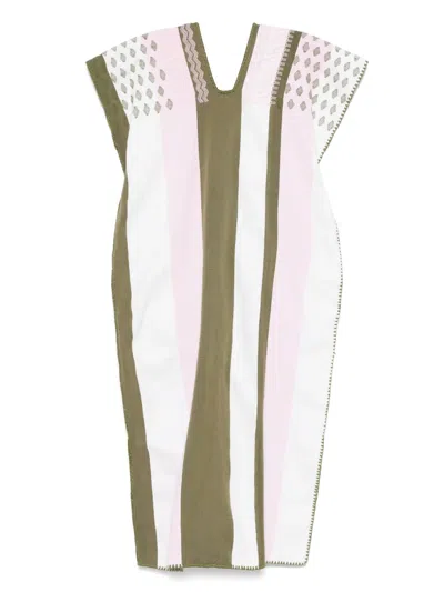 Two-panel Striped Midi Kaftan With Laced Detailing In Pink