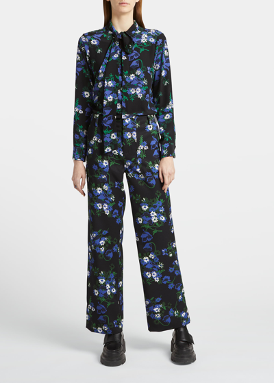 Floral-print Silk Crepe De Chine Blouse In Anemone Blue