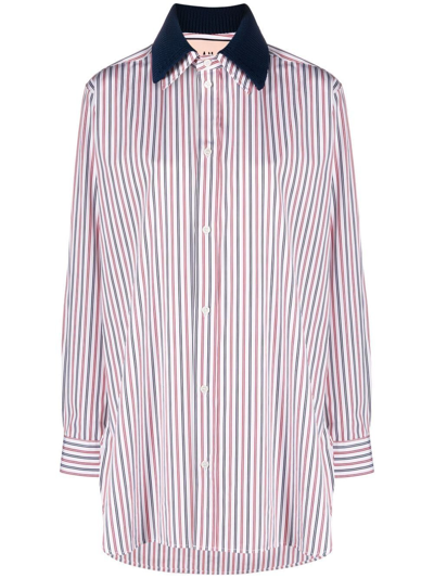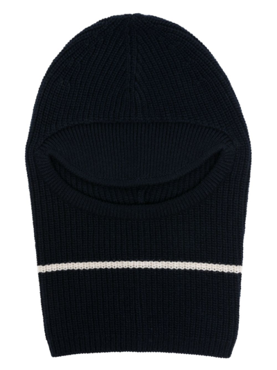 Two-tone Striped Ribbed-knit Balaclava In Blue