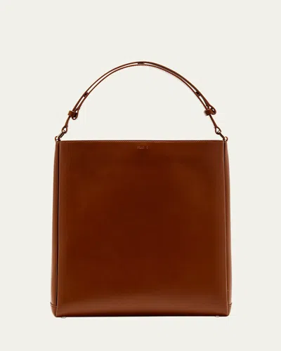 Folded Tote Bag In Vitello Leather In Brown
