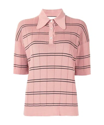 Striped Knitted Polo Top In Pink