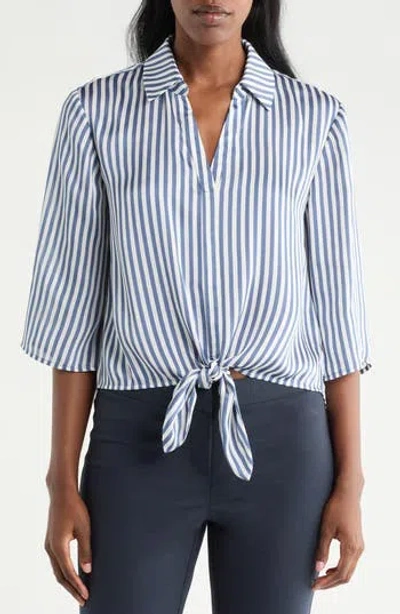 Textured Wide Leg Pants In Medium Navy Cream Shell