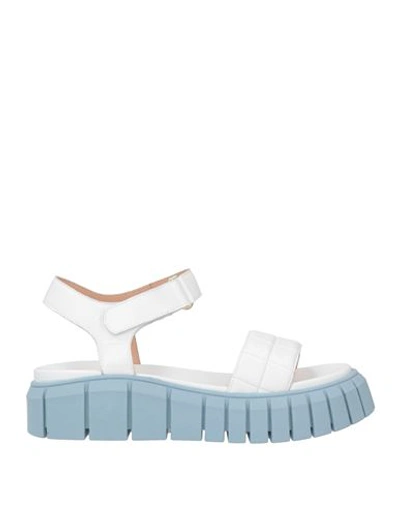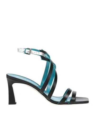 Woman Sandals Blue Size 6 Leather, Textile Fibers