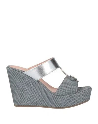 Woman Sandals Grey Size 8 Calfskin, Polyolefin