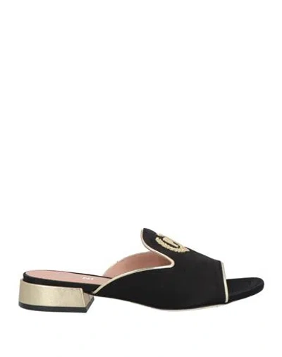 Woman Sandals Black Size 8 Leather, Textile Fibers