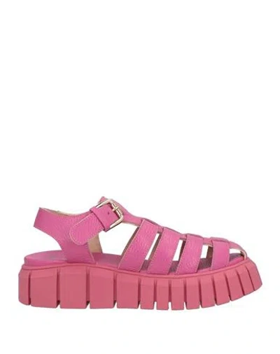 Woman Sandals Fuchsia Size 8 Leather In Pink