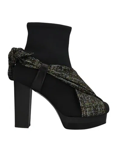 Woman Ankle Boots Black Size 5 Leather, Textile Fibers