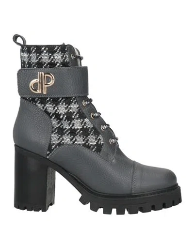 Woman Ankle Boots Grey Size 10 Leather, Textile Fibers In Gray
