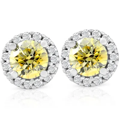 1/2 Ct Halo Fancy Canary Yellow Lab Grown Diamond Studs 10k White Gold Earrings In Multi