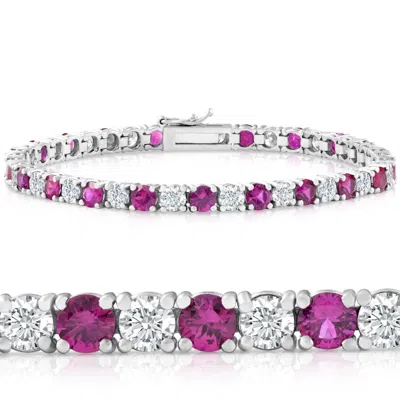 9 1/2 Ct Genuine Ruby & Diamond Tennis Bracelet 14k White Gold In Multi