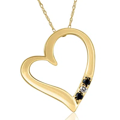 Diamond & Blue Sapphire Heart Pendant 3-stone Yellow Gold With 18" Chain In Multi