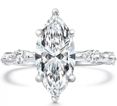 3.17ct White Gold Certified Lab Grown Marquise Diamond Engagement Ring In Silver