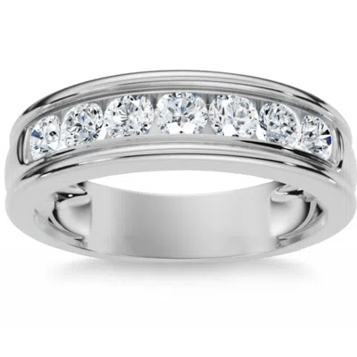 1.10ct Diamond Eternity Men's Wedding Ring Polished Band 14k Gold Lab Grown In Silver