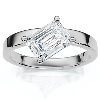 1ct Tilted Emerald Diamond Ring 14k Gold Or Platinum Lab Grown In Metallic