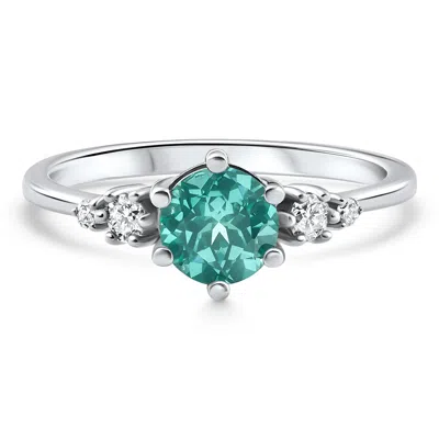 1ct Tw Paraiba & Diamond Ring 14k White Gold Lab Grown In Metallic