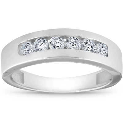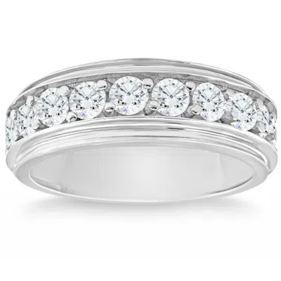 1ct Diamond Channel Set Polished Wedding Band Mens Ring 14k White Gold Lab Created In Multi