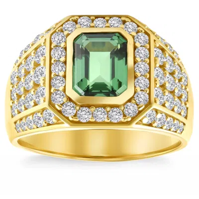 4 1/2ct Emerald & Diamond Men's Ring 10k Yellow Gold Lab Grown In White