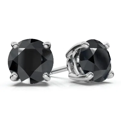 Kids' 1 1/2 Ct 14k White Gold Round Black Diamond Stud Earrings In Burgundy