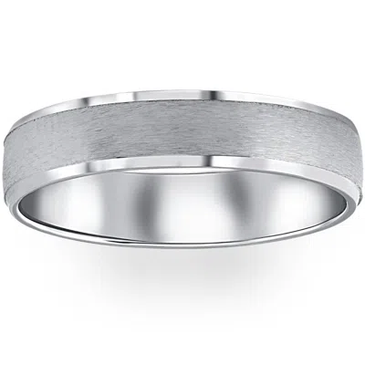 Mens 5mm 10k White Gold Brushed Wedding Band In Silver