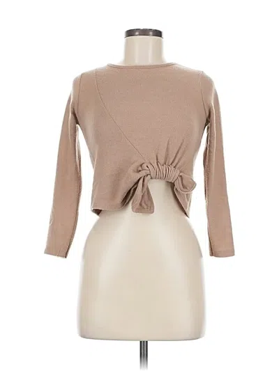 Pre-owned Long Sleeve Top Brown Plunge Neckline Tops