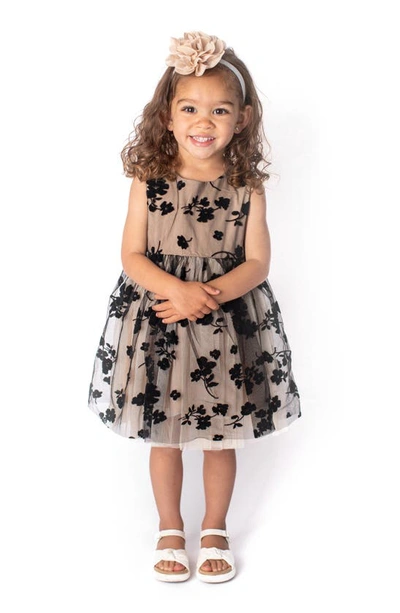 Babies' Flocked Floral Overlay Tulle Dress In Peach