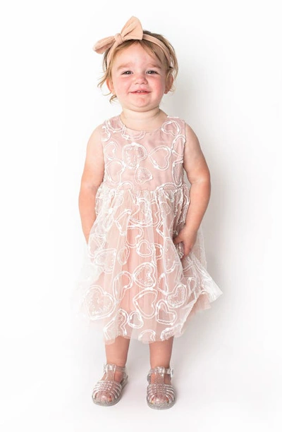 Babies' Embroidered Overlay Sleeveless Dress In Blush