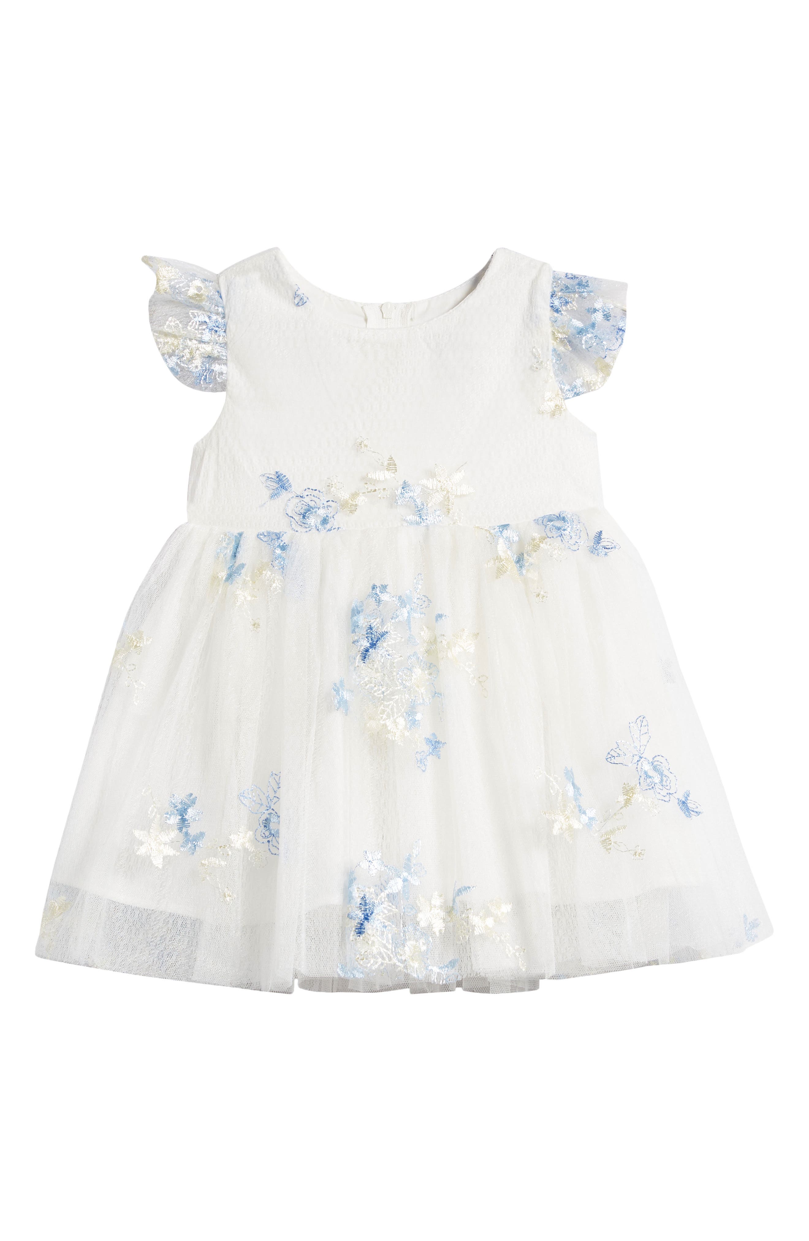 Babies' Floral Embroidered Tulle Dress In White/blue