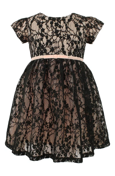 Kids' Metallic Cap Sleeve Lace Dress In Dark Red