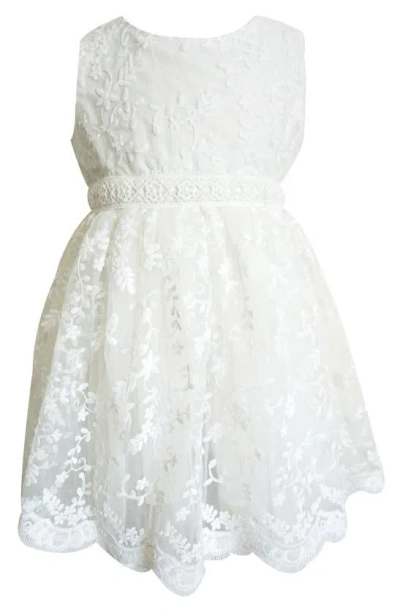Babies' Floral Embroidered Mesh Overlay Dress In Ivory