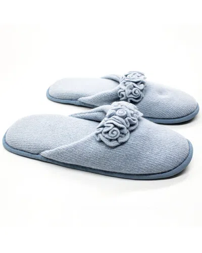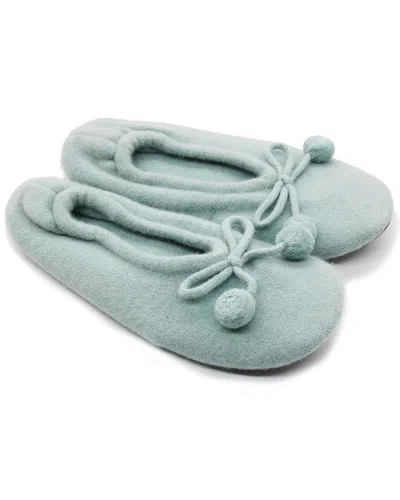 Ladies Ballerina Slippers With Bow And Poms In Light Blue