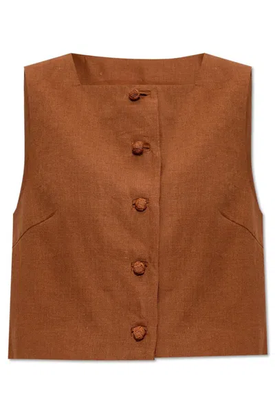 Womens Natural Emma Two-patch-pockets Linen Vest