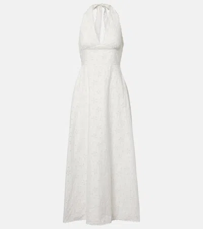 Salma Embroidered Halterneck Cotton Midi Dress In White