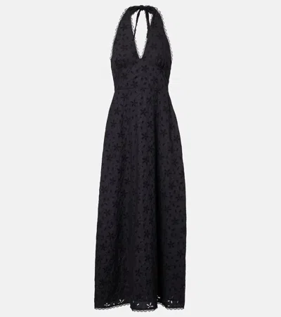 Salma Embroidered Halterneck Cotton Midi Dress In Black