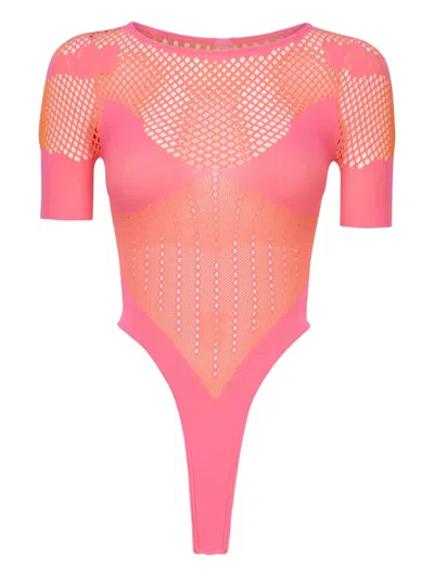 Mesh-panel Bodysuit In Pink