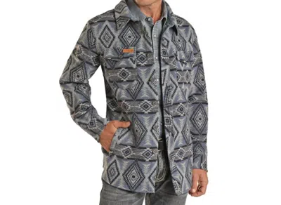 Aztec Jacquard Wool Shirt Jacket In Light Navy In Gray