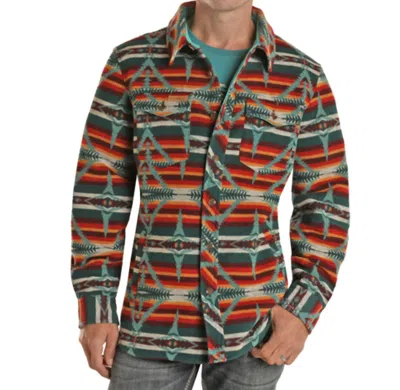 Aztec Wool Blend Shirt Jacket In Teal/multi
