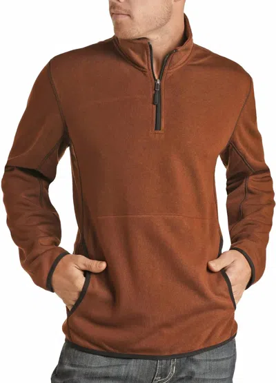 Heather Knit 1/4 Zip Pullover In Rust In Multi