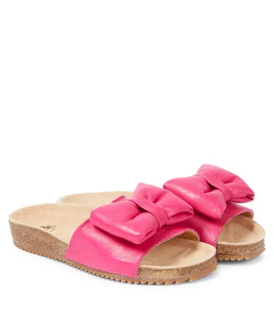 Kids' Bow-detail Leather Slides In Pink