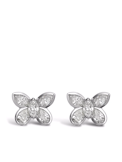 18kt White Gold Butterfly Diamond Stud Earrings In Silver