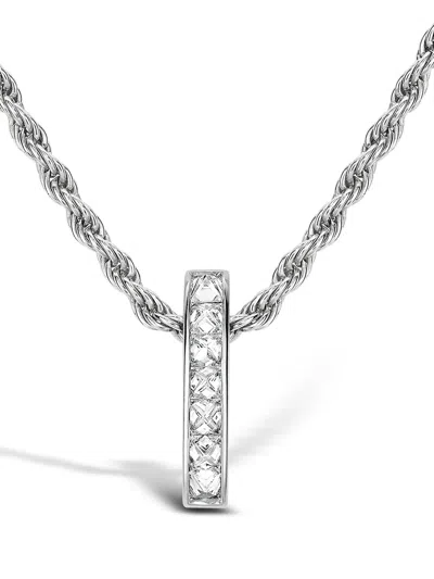 18kt White Gold Rock Chic Diamond Bar Pendant Necklace In Silver