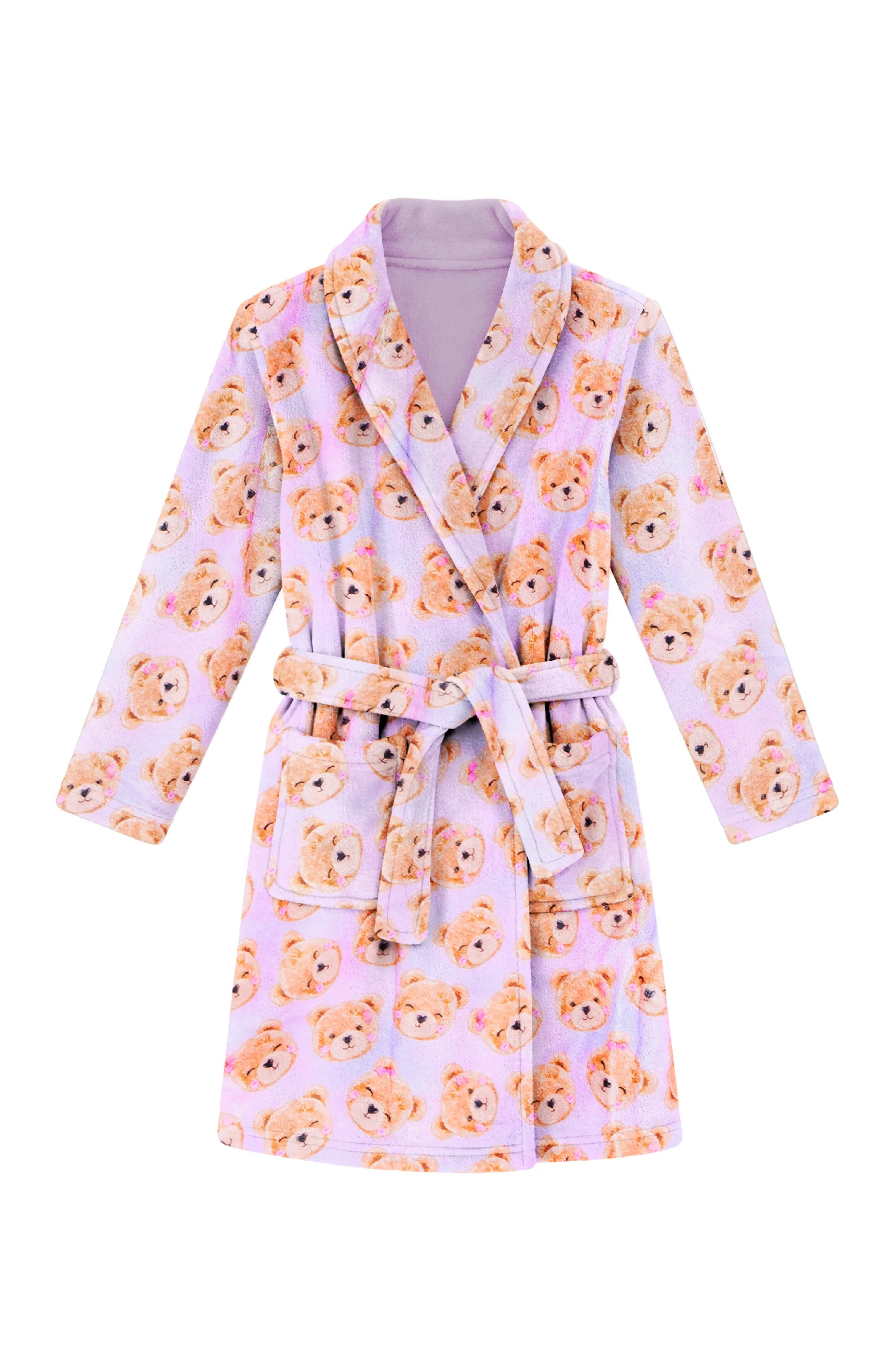 Babies' Plush Bow Print Loungewear Robe In Pink