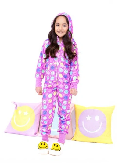 Kids' Plush Smiley Faces Loungewear Jumpsuit In Purple