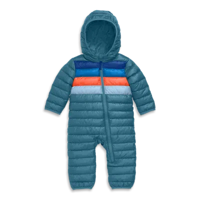 Baby Lightweight Puffer Suit In Rainbow Stripe In Gold
