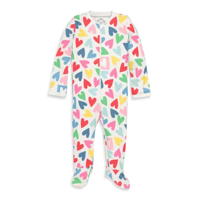 Baby Organic Zip Footie In Rainbow Candy Hearts In Multi